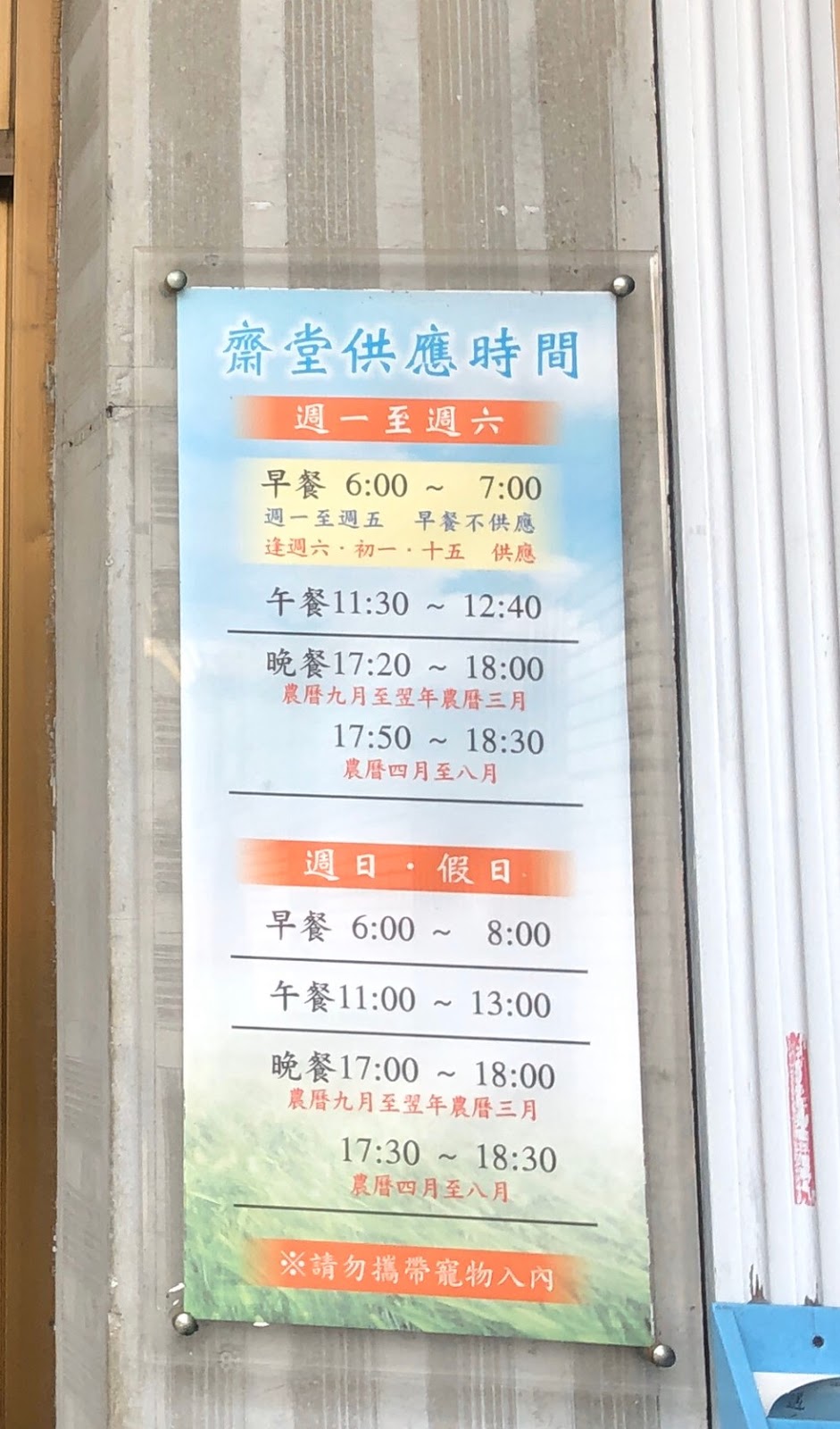 齋堂供應時間 早、中、晚都有,太慈悲了